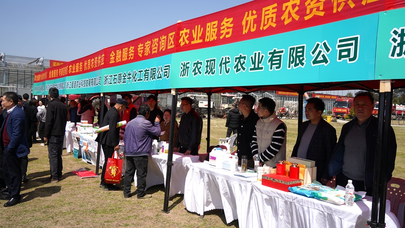 啟動儀式現場,省供銷社、省農業農村廳、省氣象局、省農科院、浙江農商聯合銀行、臺州市供銷社、溫嶺市供銷社等單位向溫嶺市農民代表贈送春耕支農服務大禮包,包含優質化肥、水稻種子、蔬菜種子、小型自動氣象站等。現場,浙農股份下屬惠多利、愛普控股、浙農金泰、現代農業等涉農單位設立展臺,展示了新型優質農資商品等,并為前來展臺的農戶細致耐心地介紹;省農資商品應用技術顧問團專家也到現場為農戶答疑解惑。