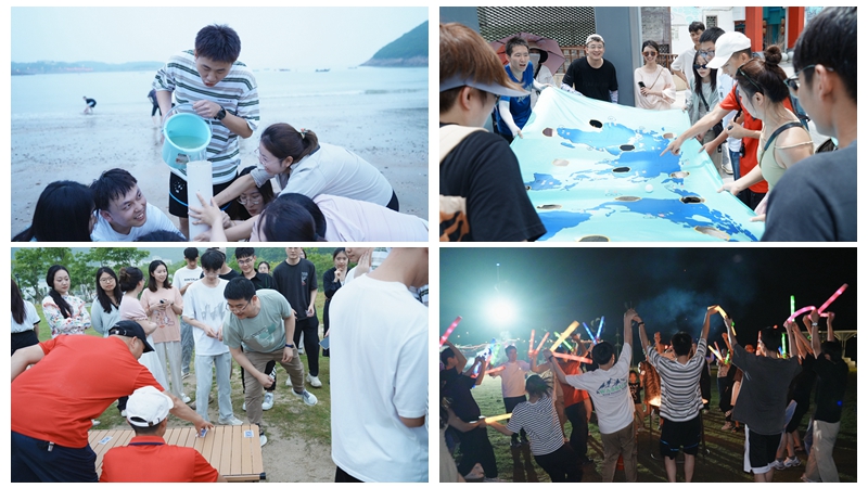 在簡短的開營儀式后,大家隨機分為四個小組,一場關于速度、智慧與團隊協作的較量正式拉開序幕?!皳淇吮却笮 表椖孔尨蠹以谳p松愉快的氛圍中學會了如何運用策略與智慧,在競爭中尋找合作,共同達成目標?!耙幻摰降住苯恿悇t將現場氣氛推向了高潮。隊員們化身為靈活的“脫衣戰士”,在歡聲笑語中完成了一場速度與策略的較量。緊接著是“滴水不漏”項目,看似簡單實則暗藏玄機。隊員們需用手指緊密合作,堵住管子洞口,確保水流在傳遞過程中不泄露一絲一毫。在緊張激烈的比賽中,大家紛紛展現出了高度的專注力與責任感,為團隊的勝利貢獻自己的力量。