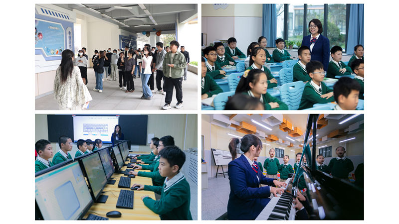 參觀團(tuán)一行首先觀摩了學(xué)生作品展區(qū)。繪畫(huà)、手工藝品、環(huán)保裝置等創(chuàng)意作品琳瑯滿(mǎn)目,充分展現(xiàn)了學(xué)生們的藝術(shù)才華和創(chuàng)新能力。在教學(xué)區(qū),雙語(yǔ)互動(dòng)課堂和智慧教學(xué)場(chǎng)景吸引了參觀者的目光。校方介紹,學(xué)校通過(guò)多元化社團(tuán)活動(dòng)和個(gè)性化課程設(shè)置,全面促進(jìn)學(xué)生綜合素質(zhì)發(fā)展。